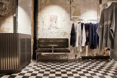 Der rund 100 qm große LFDY Store bewahrt den Charakter des historischen Gebäudes und integriert die Spuren der Vergangenheit in das moderne Store-Design. Offene Wände mit verblassten Malereien, gusseiserne Säulen und der originale Fliesenboden bilden den Rahmen für die LFDY Signature. Die polierten Edelstahlmöbel mit klarer Formensprache schaffen einen Kontrast zum französischen Flair und unterstreichen die charakteristische Handschrift der Marke – umgesetzt in Kooperation mit dem Architekten-Team von Dorenz + Jokisch.