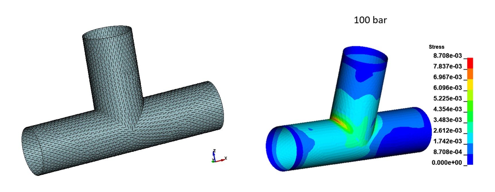 To this end, the stress distribution within the pipe joint geometry under internal pressure loading was first determined numerically. The highest stresses occur in the transition zone between the main pipe and the branch (Figure 2). This region therefore represents the governing design zone for the fiber architecture.